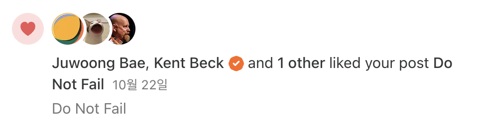 점점 양이 느니까 질을 높여보고 싶었다. 이를 위해서는 다른 사람의 피드백이 필요했다. 뉴스레터를 생각만 하던 와중에 친구인 주웅이와 마음이 맞아 Life Interest를 시작했다. 3개월이 조금 안되었지만 구독자로 100명 가까이 모았다. 심지어 ‘Tidy First?’의 저자인 Kent Beck도 좋아요를 눌렀다. 이만한 쾌감이 또 있을까?